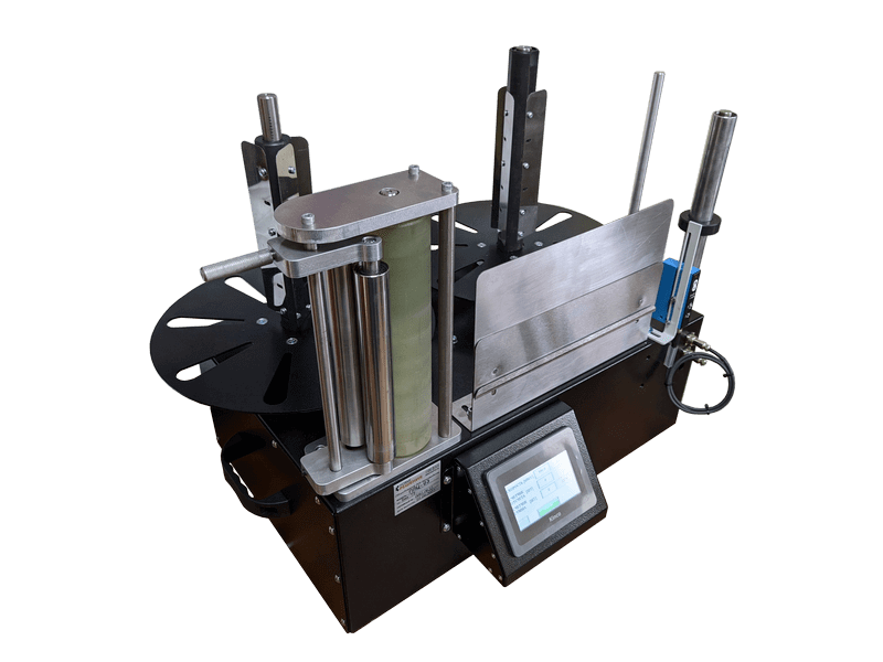 Автоматическая этикетировочная машина YTK-150 для наклейки этикетки на круглую тару. Для точного нанесения этикетки аппликатор оснащен винтовыми регулировками по высоте. Прижимной (вертикальный) транспортер обкатки также оснащен регулировкой высоты. Настройки скорости транспортера и подачи этикетки выведены на сенсорный экран. Производительность до 10000 шт./час!